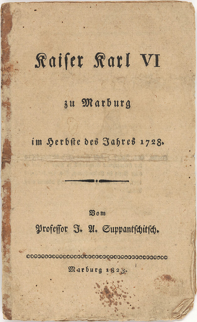 Janez Anton Suppantschitsch [Zupančič], Kaiser Karl VI zu Marburg im Herbste des Jahres 1728 / Cesar Karel VI. v Mariboru jeseni leta 1728. Vom Professor J. A. Suppantschitsch. Marburg/Maribor, 1823. 8 strani, 18 cm, broširano