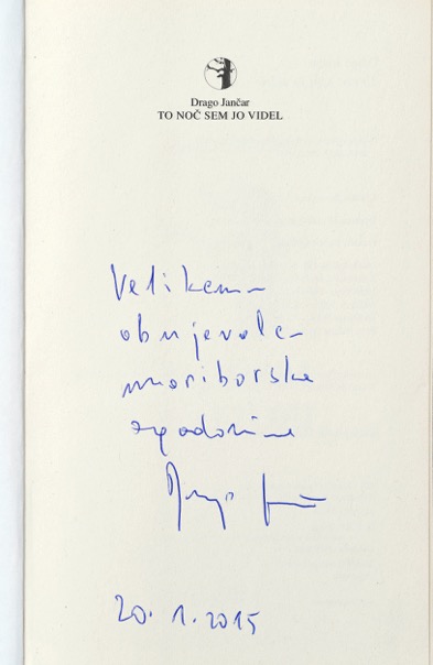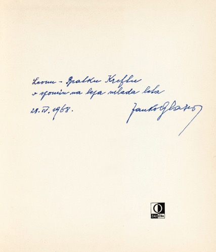 Z avtorjevim posvetilom Bratku Kreftu na prvi strani