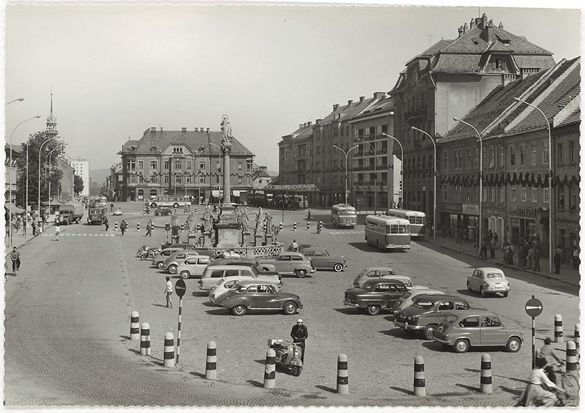 Glavi trg. Okoli 1960, fotorazglednica, foto M. Mrđanov, založilo Trgovsko podjetje Tobak, Ljubljana, neodposlana
