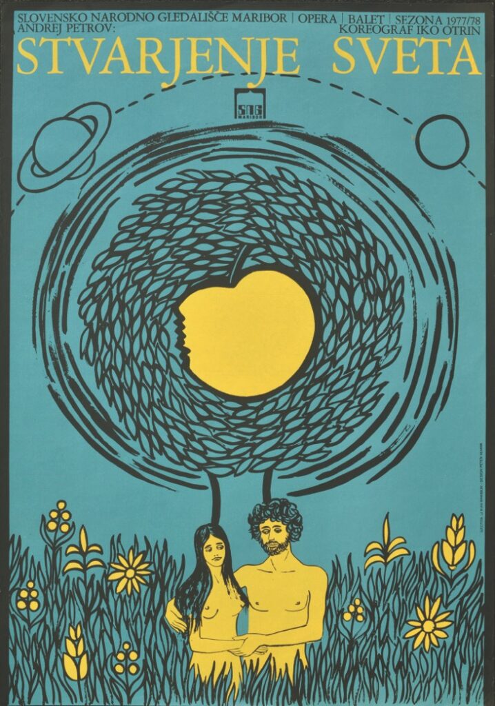 Andrej P. Petrov, Stvarjenje sveta, dirigent Marko Žigon, koreograf Iko Otrin, SNG Maribor, Opera in balet, sezona 1977/78, plakat, oblikovalec Peter Vernik, sitotisk Slikar Maribor, 68 x 47,8 cm