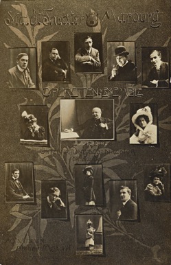 V sezoni 1909/10 je celoten Doorov ansambel obsegal 3 režiserje, 2 dirigenta in glasbenega direktorja, 20 igralcev in pevcev, 28 igralk in pevk ter 18 godbenikov. Fotokolaž Atelier Makart, fotorazglednica